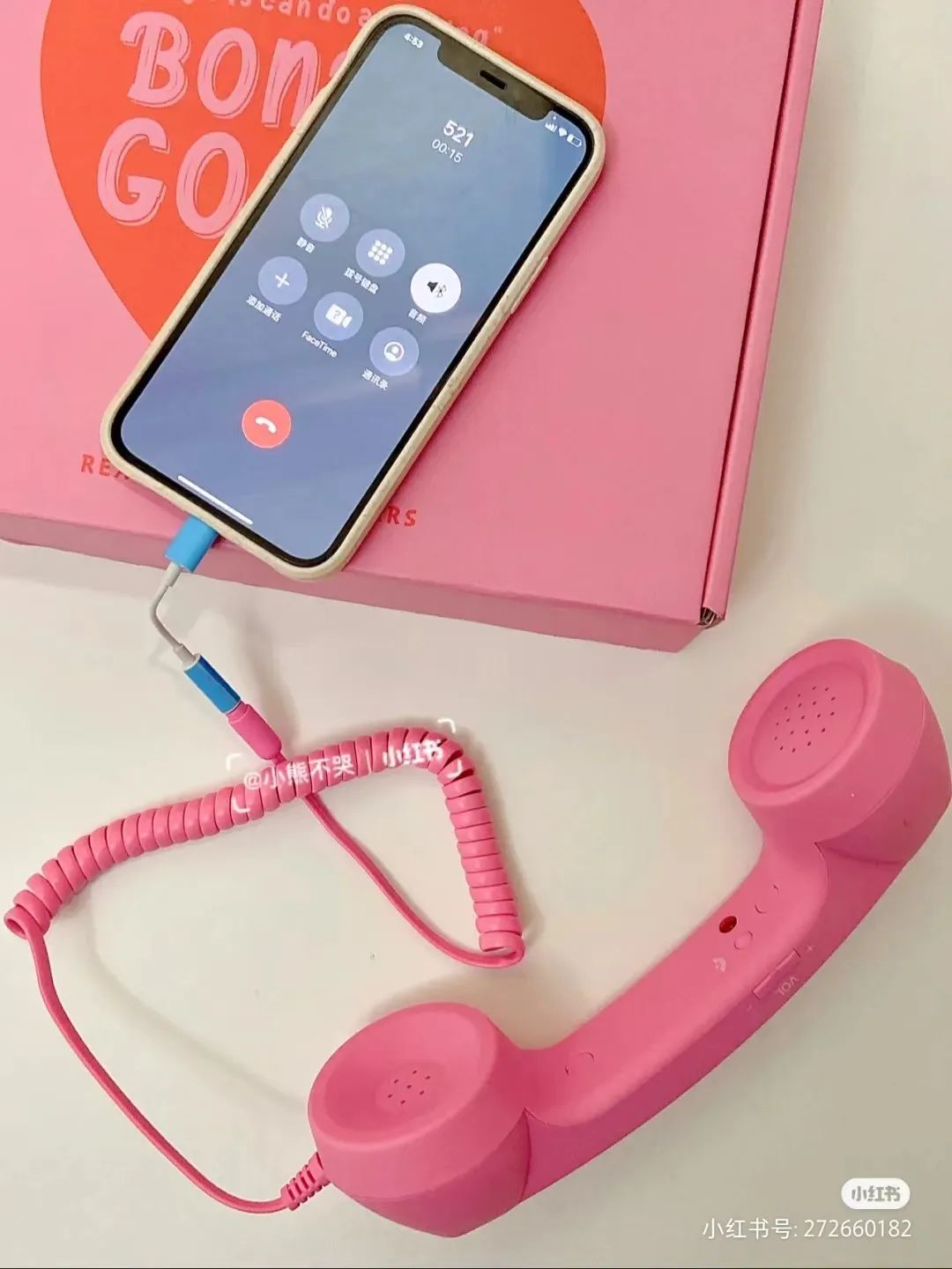 以上已经很离谱了,谁能想到,手机还衍生出了许多“妙不可言“的配件。比如说这个复古电话听筒,耳机的基础功能它都有,手柄上配备的通话键和暂停键标志着它话筒的身份,现代与传统的融合碰撞产生奇妙的化学反应,除了手有点酸、通话对象的眼神有些奇怪,一切都刚刚好。