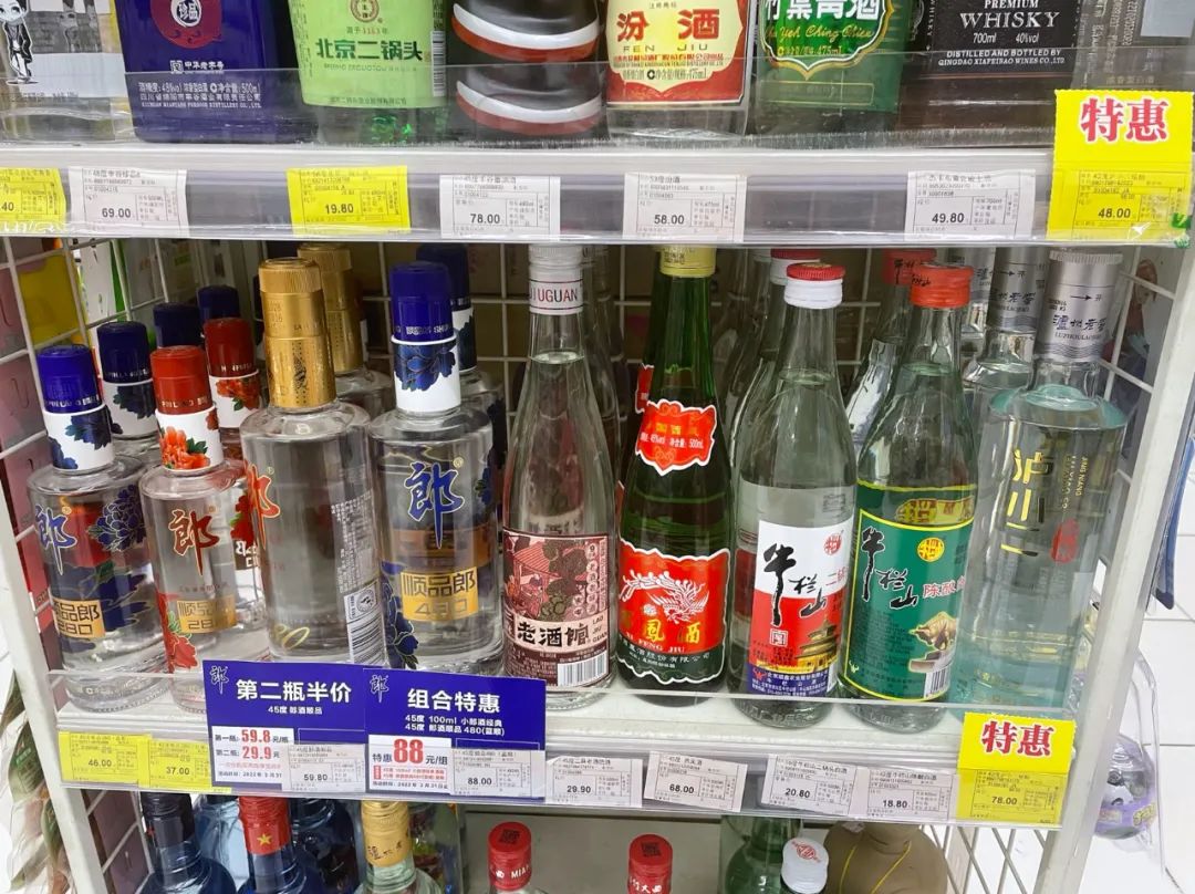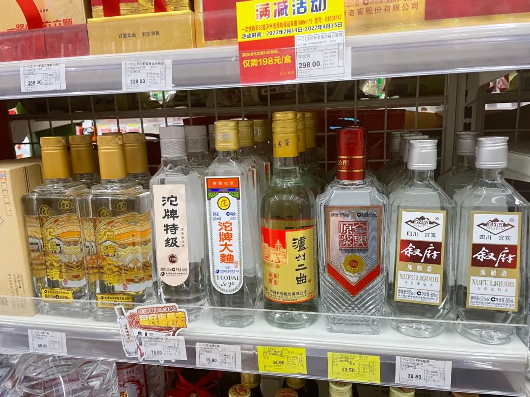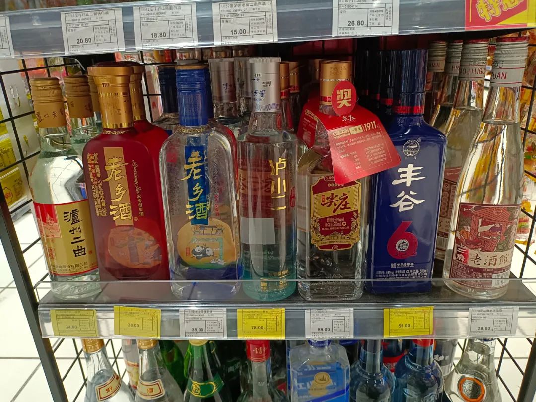 至于区域光瓶酒,在成都市场上的品牌主要有江津白酒、叙府、丰谷、金六福、二麻等。从走访结果来看,15元价格带的区域光瓶酒酿造工艺以液态法/固液法为主,且产品数量较少。商超渠道里展示的本土品牌更多聚焦在30-50元以上价格带,这部分产品基本上是纯粮酒。