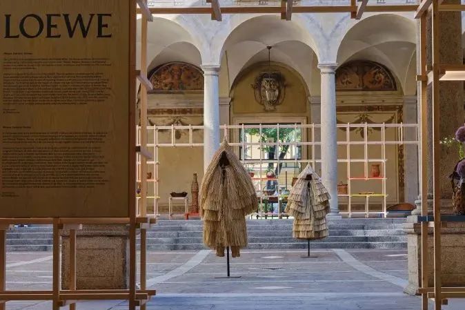 Loewe时隔两年回归米兰设计周,品牌在伊辛巴尔迪宫(Palazzo Isimbardi)展示了名为「编织新造 WEAVE, RESTORE, RENEW」的手工艺项目。