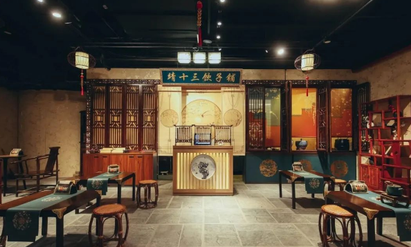 秦淮·戏院里是由是南京首都大戏院的旧址改造而成的,以明朝著名画作《上元灯彩图》为场景创作灵感,通过元宵节灯会场景描绘,将当时金陵城夫子庙一带的繁荣景象移植到了室内。