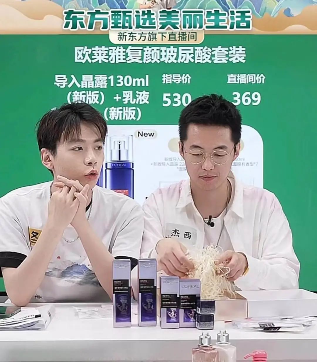 杰西和冬冬在直播间护肤品