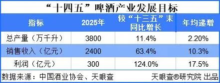 现在,中国人每年要消费429.6亿升的啤酒,平均每人每年喝掉约30升。国家统计局数据显示,2021年我国啤酒产量累计达3562.4万千升,同比增长5.6%。根据“十四五”中国酒类产业的发展目标,啤酒产业到2025年,产量达3800万千升,比“十三五”末增长11.4%,年均递增2.2%;销售收入达到2400亿元,同比增长63.4%,年均递增10.3%;实现利润300亿元,同比增长124.0%,年均递增17.5%。
