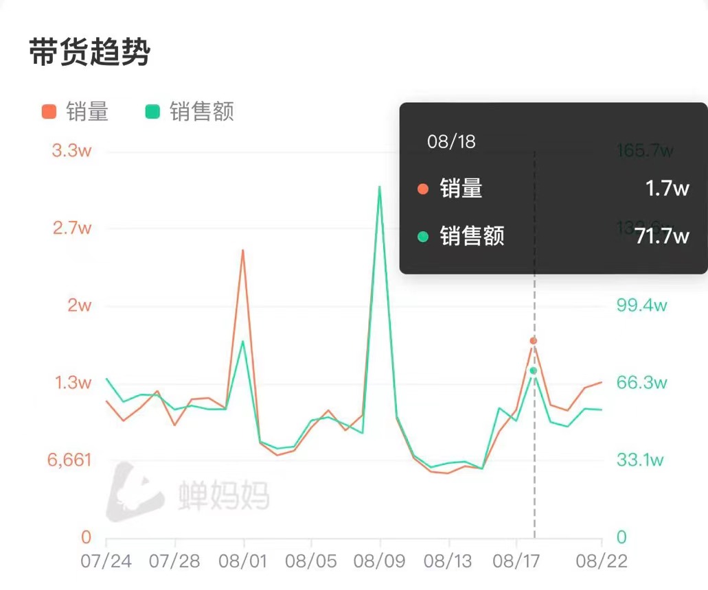 818东方甄选图书号的“小韩老师”首次直播有上万人在线,当天销售额达71.7万元为最近一周销售额小高峰