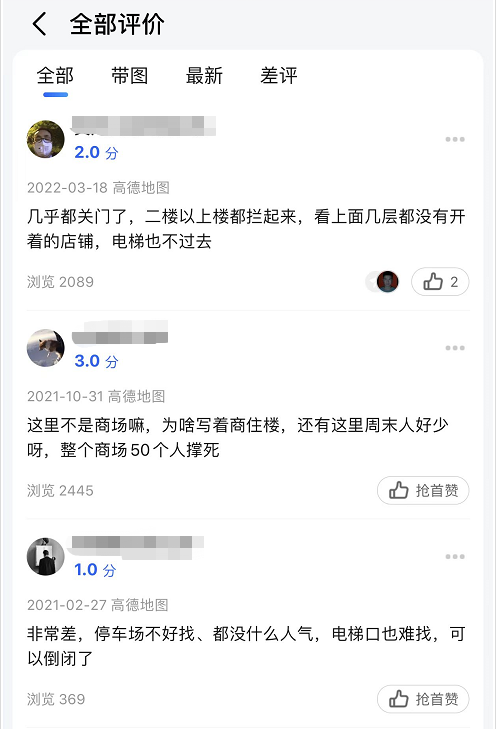 有位高德地图用户于今年3月评价博雅城:“几乎都关门了,二楼以上楼都拦起来,看上面基层都没有开着的店铺,电梯也不过去”。