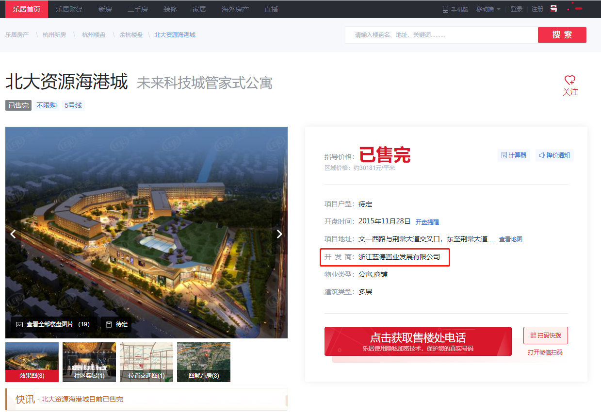乐居网显示,博雅城项目于2015年11月开盘,物业类型为公寓、商铺,目前已售完。其开发商正是蓝德置业发展有限公司。