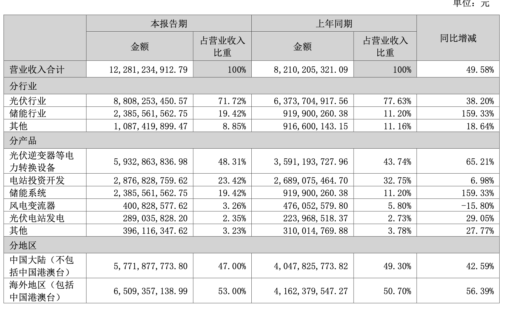 8月26日,阳光电源发布半年业绩,其上半年营收约122.81亿元,同比增加49.58%;归属于上市公司股东的净利润约9亿元,同比增加18.95%;整体毛利率为25.54%,同比下降2.51%。