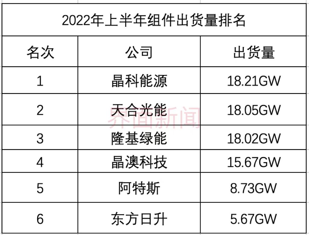 随着东方日升半年报的披露,全球前六大组件商上半年的出货量数据全部出炉。
