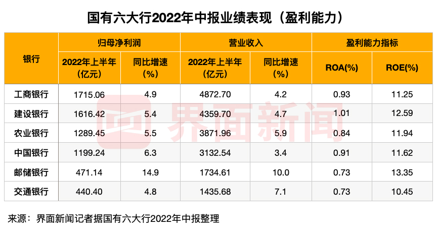 随着2022年中报季收官,国有六大行交出了期中的“答卷”。六家国有大行上半年业绩表现数据如何?