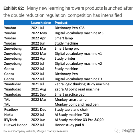 摩根士丹利认为,在激烈的竞争中,具有内容和技术优势的公司更有可能在竞争中获得更大市场份额。头部辅导企业,例如新东方、好未来和有道,积累了高质量的学习内容和研发能力,支持开发成熟的内容/服务。有道在词典笔等硬件产品上有优势。随着疫情影响减少,线下新渠道可能成为有道下一个增长驱动力。