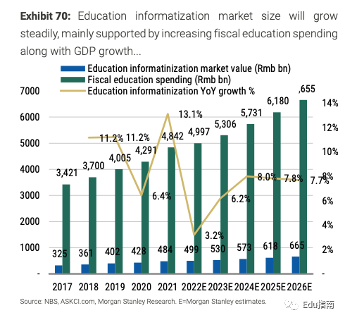 摩根士丹利认为,该细分市场将稳定增长,预期2026年,国内将投入6650亿元用于教育信息化。从市场规模体量来看,是一个不可忽视的“大”赛道。