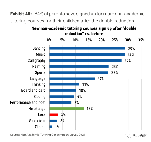 双减后,84%的家长已为其子女报名更多非学科辅导课程