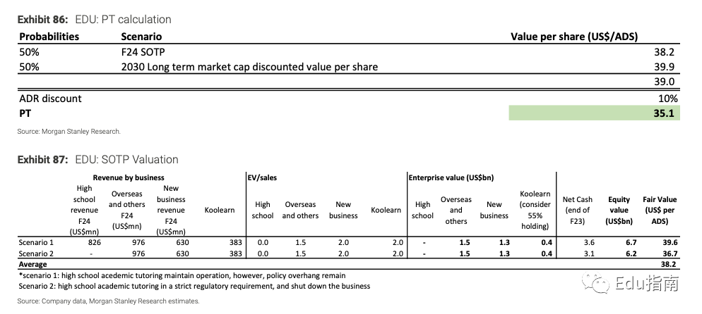 由于新东方有更多新业务贡献,摩根士丹利提高了对其2023财年收入的预测,但部分被过去几个月疫情封锁影响的海外业务贡献降低抵消。6月,随着线下活动在北京、上海等重点城市逐步恢复正常运营,新东方海外业务也应逐步恢复。基于更高的收入预测与长期潜力,摩根士丹利将新东方目标价评估为35.1美元。