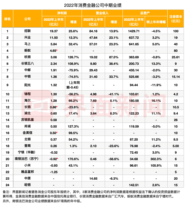 2022年消费金融公司中报季,值得关注的是前十强的座次“大洗牌”。其中,蚂蚁消费金融和阳光消费金融表现最为抢眼。
