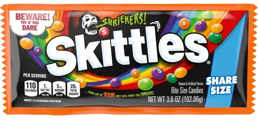 去年万圣节前夕,玛氏箭牌发布一款限量版“酸到尖叫”彩虹糖,其中包含五种酸味的糖果——柑橘尖叫、残忍的青苹果、嘎吱嘎吱的覆盆子、令人震惊的酸橙和刺痛的橘子,为消费者营造了一个氛围感满满的节日气息。