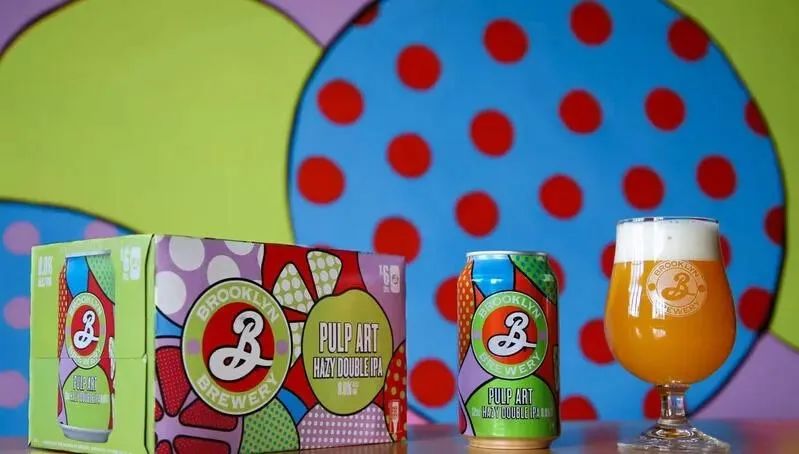 2022年4月份,为了向过去的流行艺术致敬,布鲁克林啤酒厂推出一款在视觉与味觉上给人强烈感受的 Pulp Art Hazy Double IPA。该产品的特点是朦胧、柔软而有力,带有新鲜菠萝、生动的百香果的香气,并以 Citra、Sultana 和 Sabro 啤酒花为特色,包装上绿色和紫色色调搭配鲜艳的红色和蓝色色调,营造出令人印象深刻的标志性朦胧外观,给人带来双重的刺激效果。