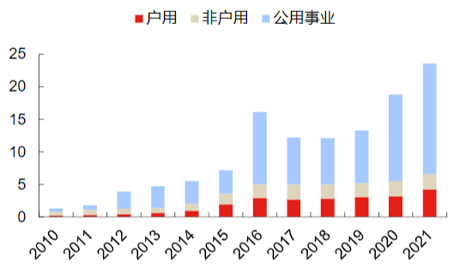 在美国,拜登政府上任第一天就宣布重返《巴黎气候协定》,并在当年推出《合并拨款法》和《2020年能源法案》,支持新能源投资建设,后又推出《两党基础设施法》和《2022年通胀削减法案》(IRA)等财税支持政策,其中IRA法案将联邦光伏投资税收抵免政策(ITC)直接延期十年。2021年当年,美国新增光伏装机23.6 GW。
