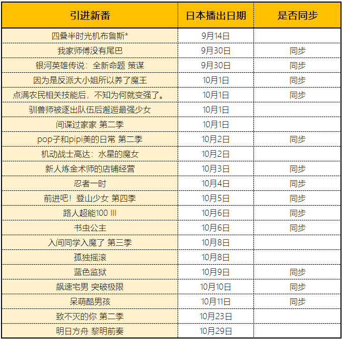 9月30日,《我家师傅没有尾巴》和《银河英雄传说:全新命题 策谋》两部新番同步播出。前一部里有大量落语表演,文化方面的差异加大了国内动画观众吸收、理解的难度,而后一部“太空歌剧”式的大段台词表演相当考验新入坑的动画观众,所以这两部新番同步上线的信息只是令少数动漫爱好者颇感“意外”,毕竟2年多来因为“先审后播”的原因,每一季能够同步上线的新番屈指可数。