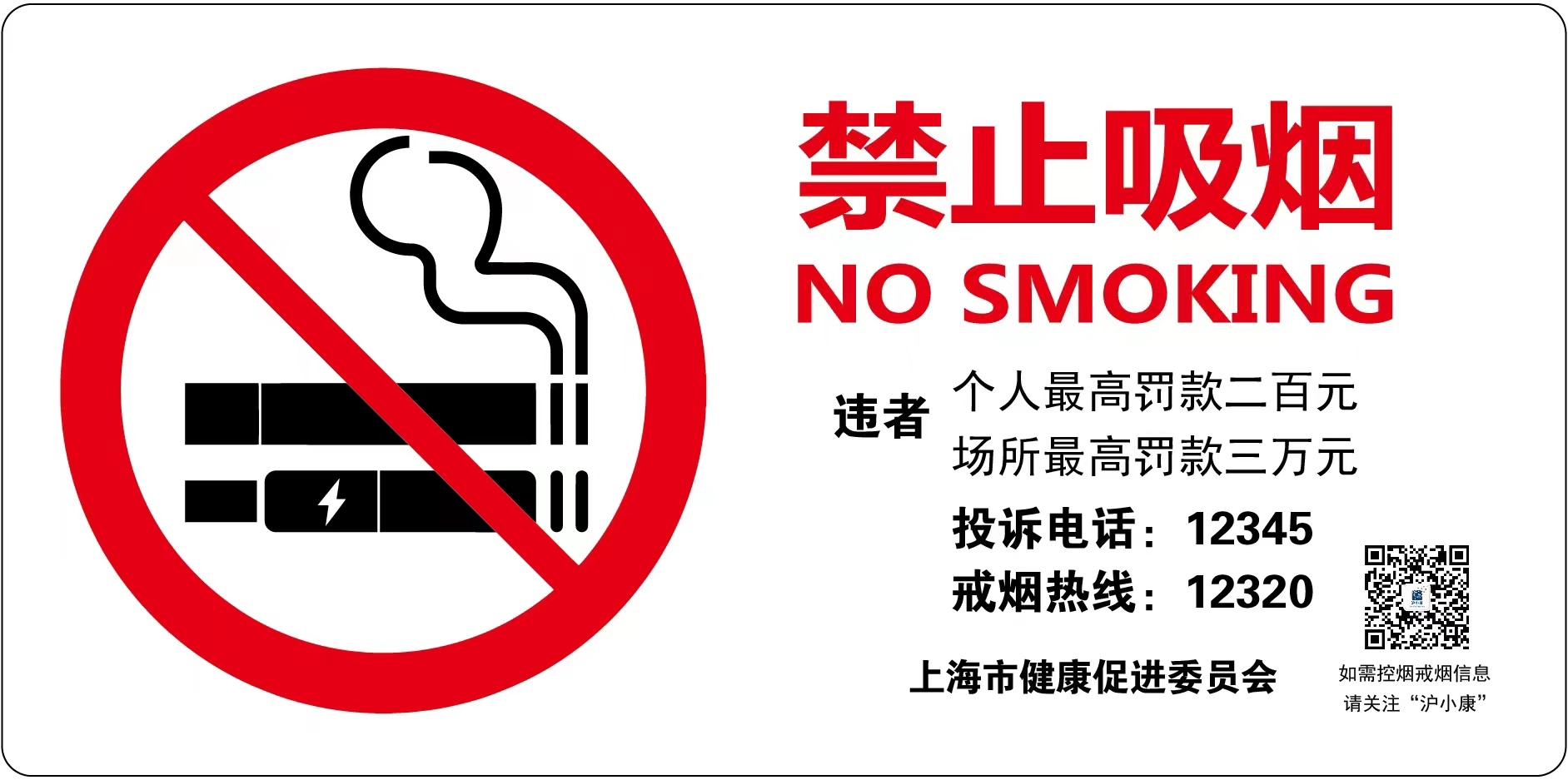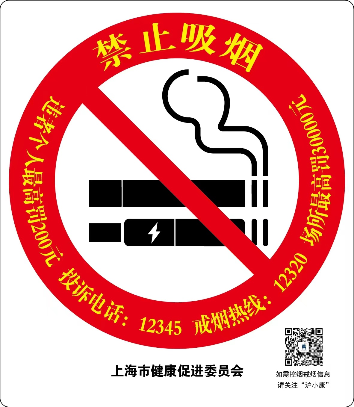 当天,上海市健康促进委员会推出最新版禁烟标志。