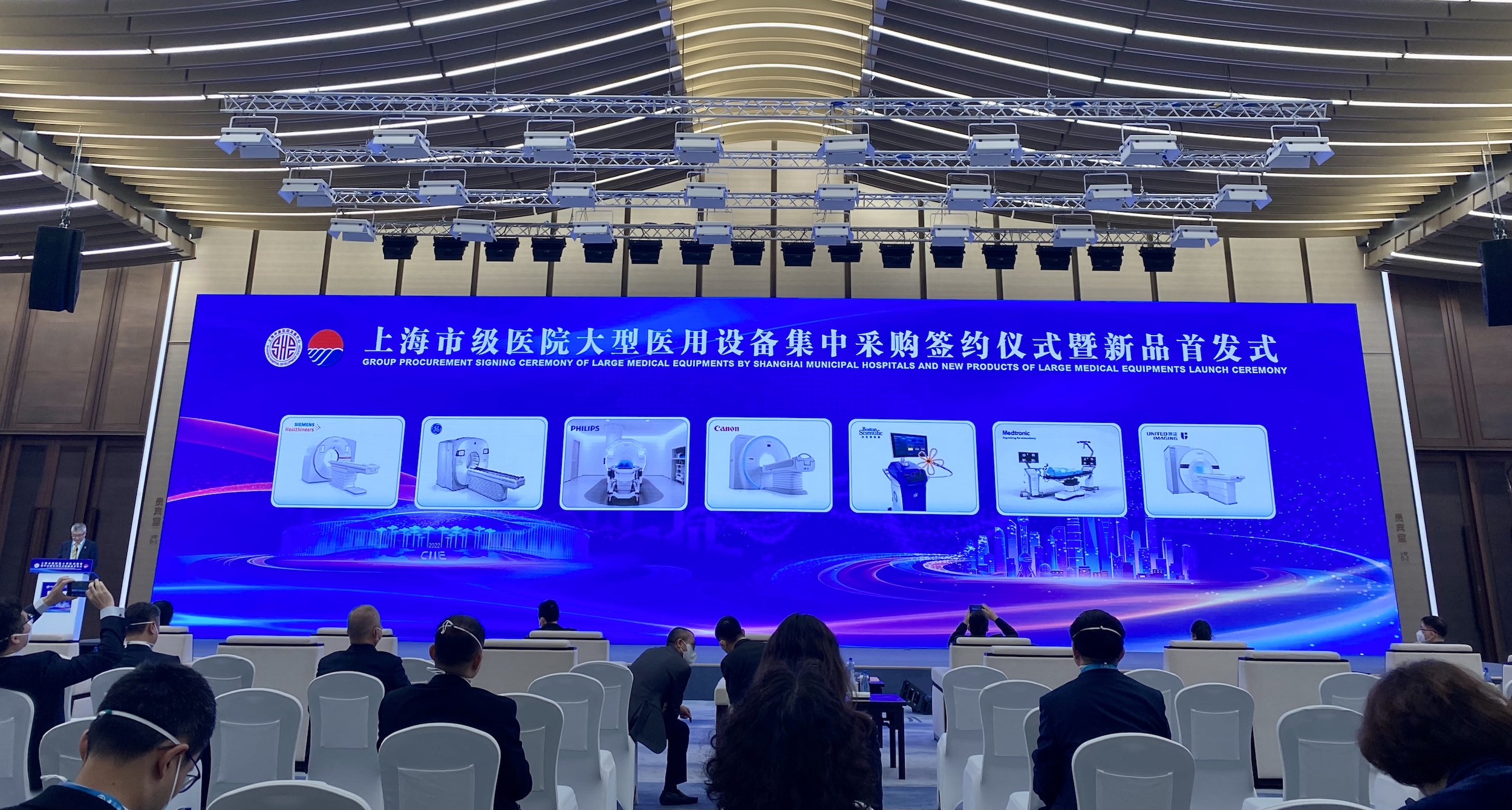 作为第五届进博会上海交易团的重要配套现场活动之一,2022年11月8日,由上海申康医院发展中心与东方国际(集团)有限公司共同主办的“上海市级医院大型医用设备集中采购签约仪式暨新品首发式”在国家会展中心举行。