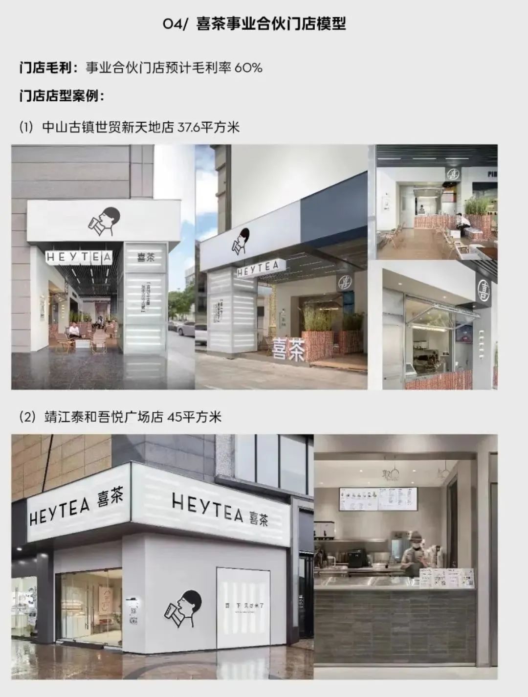 喜茶给出的参考店型里,也都是中山、宜昌、泰州等非一线城市,门店面积基本都在50平米以内。