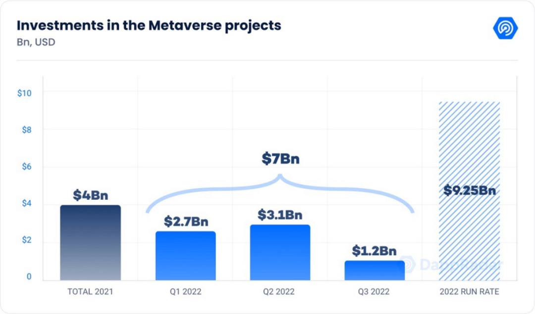 数据显示,元宇宙和Web3游戏项目在2022年已累计融资约70亿美元,第三季度的融资额达到12亿美元