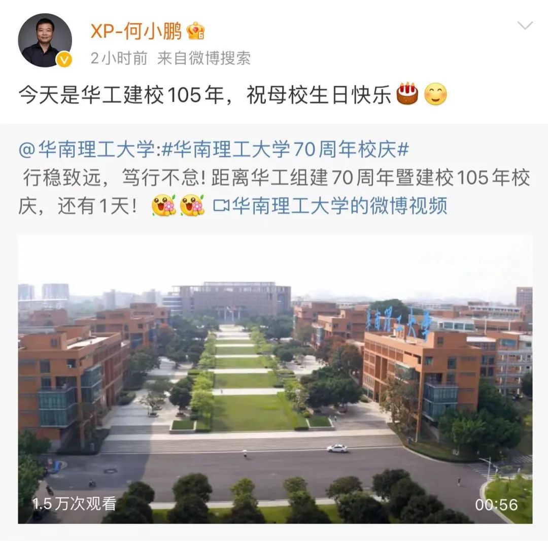 缔造了“造车新势力”三巨头之一的小鹏汽车,何小鹏正是一位华工校友。出生于湖北黄石的何小鹏,自小成绩优异,1995年成功考入华工计算机及应用专业。毕业后,他先是加入了亚信公司,后又在2004年拉上大学校友梁捷一起创办了UC优视。后来在2014年,UC以43.5亿美元卖给了阿里巴巴。一夜之间,37岁的何小鹏实现了财富自由。