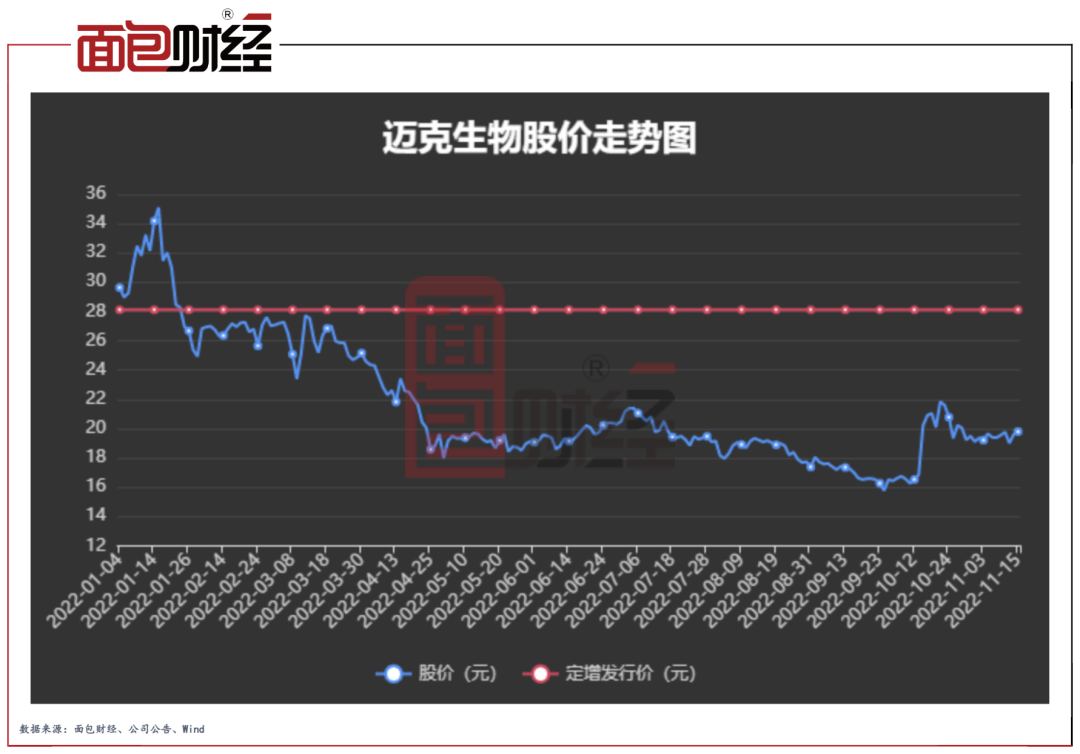 近期,迈克生物股价持续跌破定增价。高毅资本、诺德基金、兴全基金等参与该次定增的机构投资者正面临较大幅度的亏损。