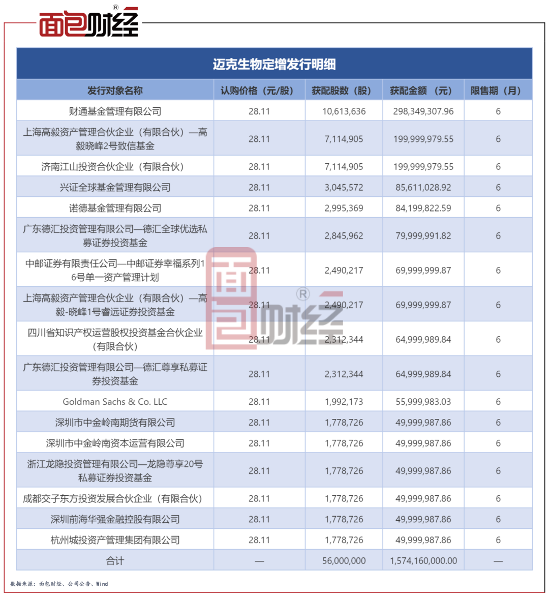 2022年初,迈克生物定增发行上市,包括高毅、兴全基金在内17家机构参与认购,锁定期为半年。