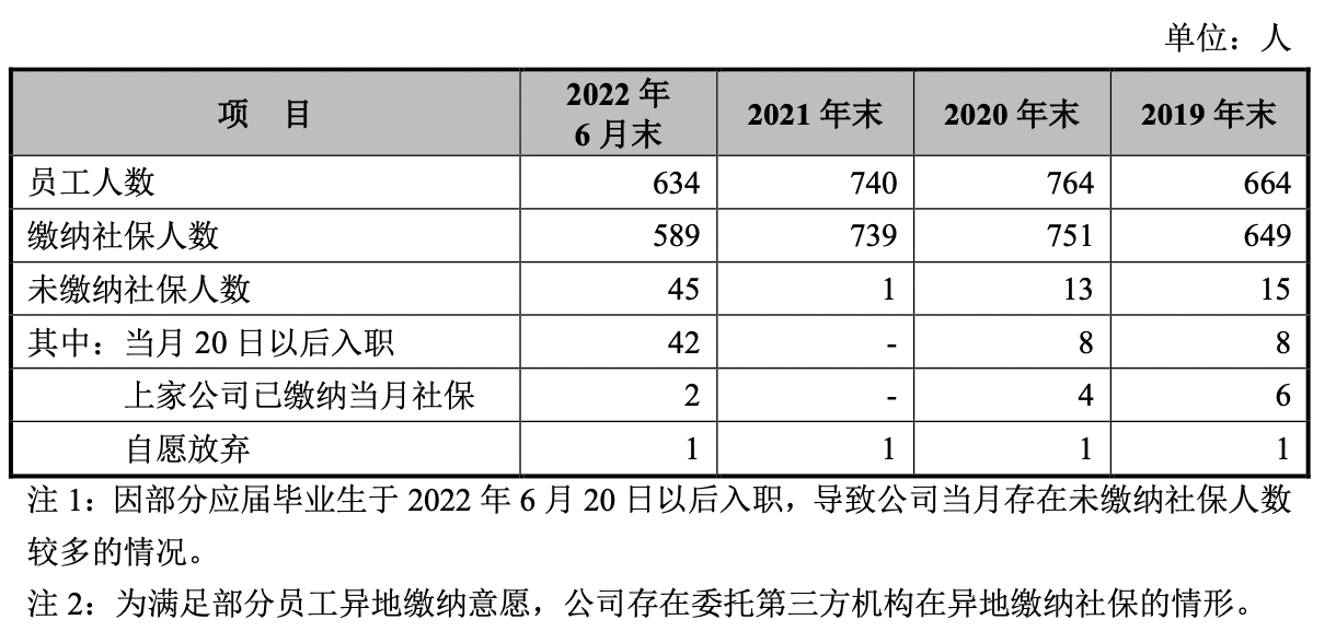2021年末,公司总员工740人,而今年上半年仅634人。而从社保缴纳来看,离职人员数量很可能在150人。
