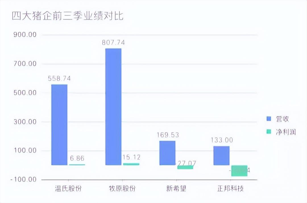 但同样是在10月,猪肉行业的基本面又是惊喜不断。牧原和温氏两大龙头顺利扭亏,新希望大幅减亏。如果只看三季度,四大猪企中只有正邦科技尚未实现盈利。牧原和温氏的三季度单季分别净赚了81.7亿和42亿元,三季报后温氏更是引来了超过200家机构的调研。