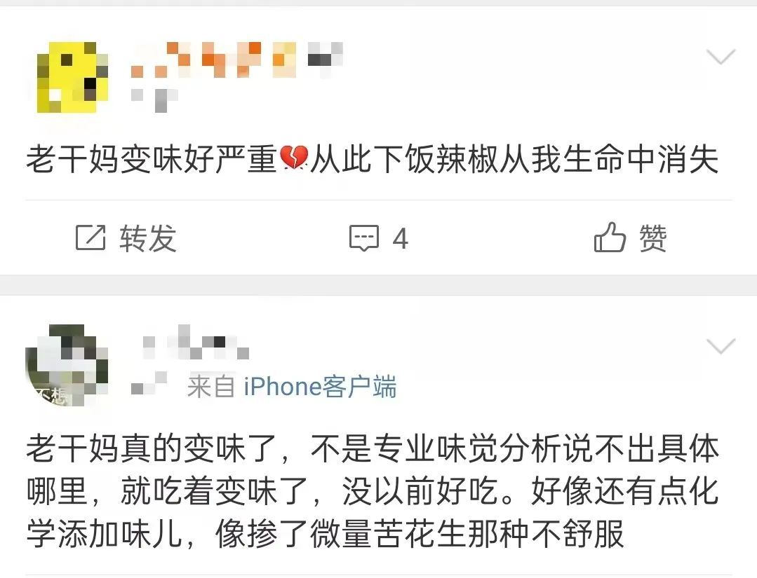 事实证明,永远别拿消费者当傻子。大家虽不知道工厂里发生了什么,但吃了十几年的味儿,变没变还能不知道吗?辣酱不好吃,别说牌子是老干妈,老干祖宗也不行。