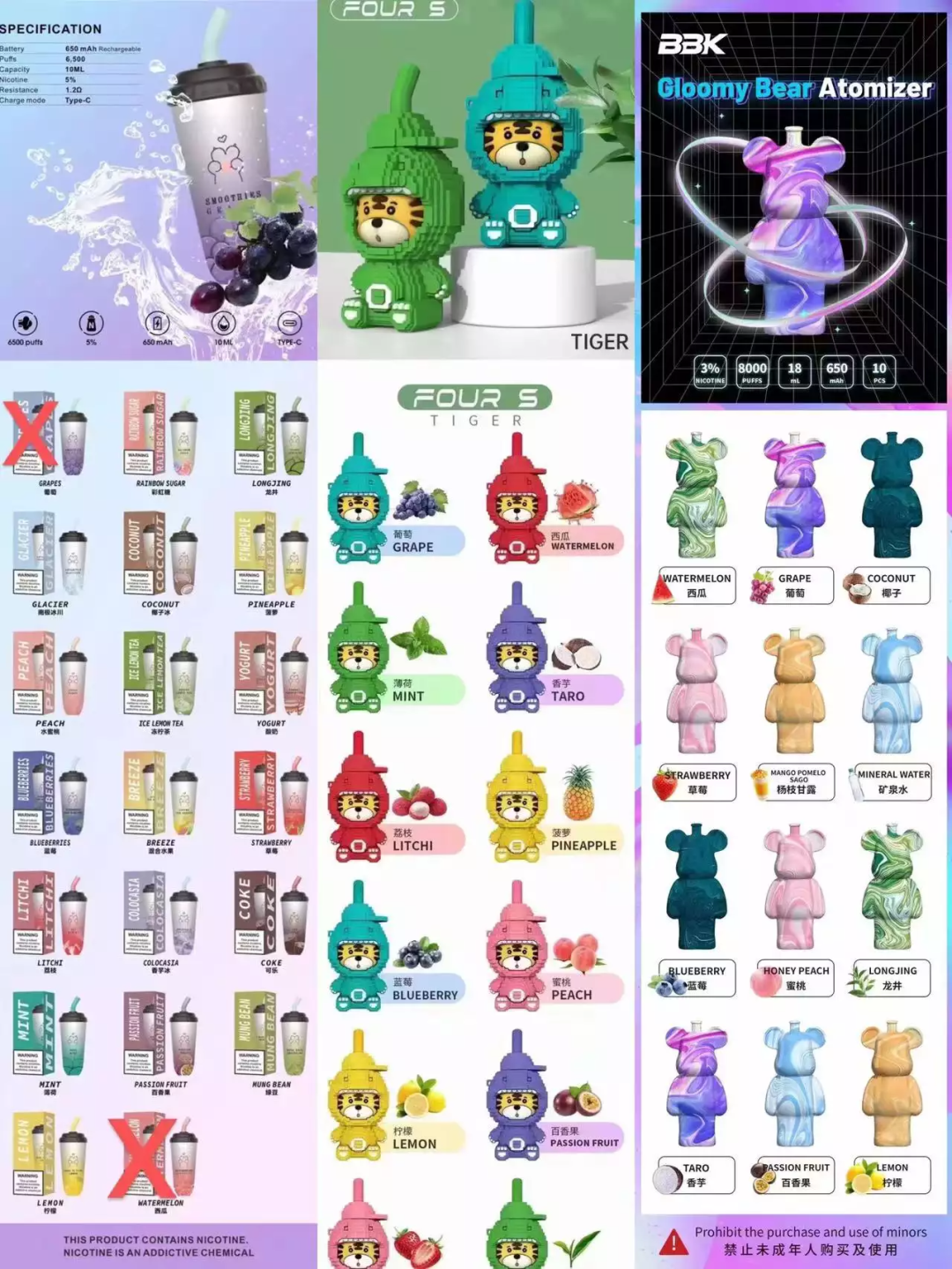 但在正式禁售一个月后,王建成发现电子烟微商们又在朋友圈活跃了起来。各式口味的一次性电子烟“席卷重来”,仿佛没有消失过。“奶茶杯”、“可乐杯”,各种暗称的一次性果味电子烟,游离在监管之外,大量流通。烟油超标,最高售价超百元一杯,还可以线上购买,一个地下灰色产业暗流涌动。