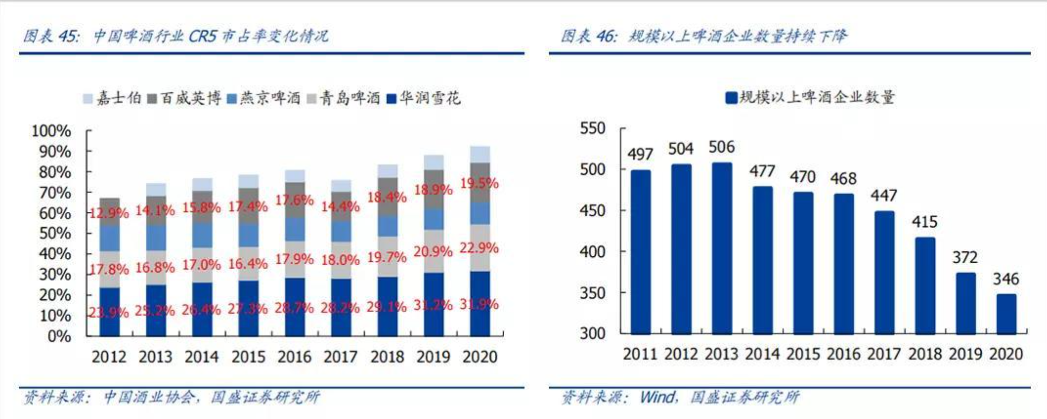 据券商研究,2020年CR5市占率高达92%,而仅华润一家就达到了31.9%,远高于百威英博的22.9%和重啤嘉士伯10%左右等。