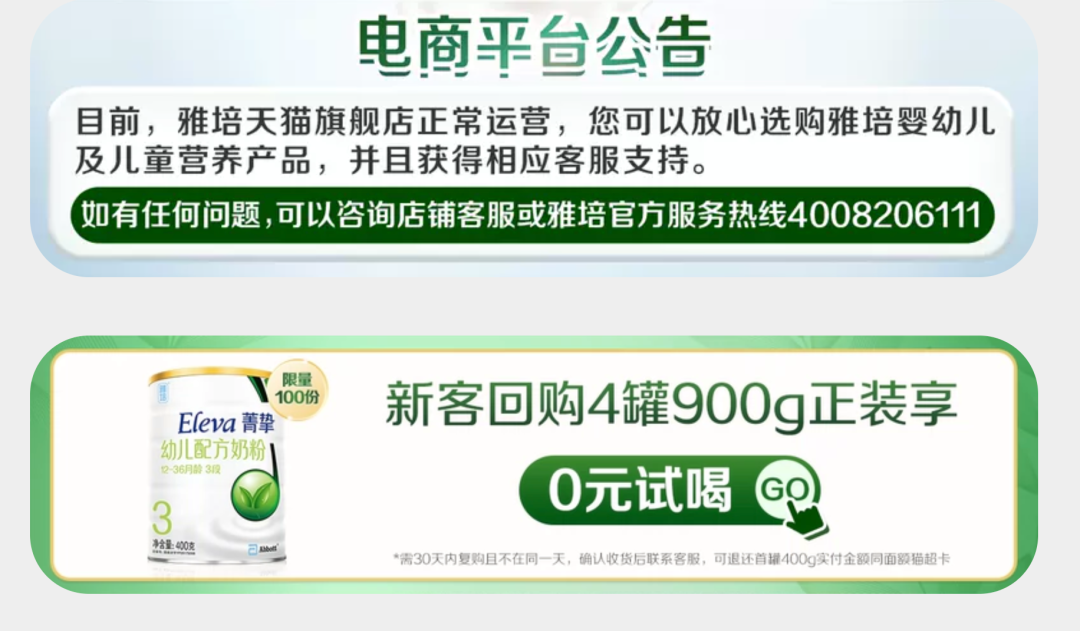 ”可以先囤点货。“主播说。另据雅培在某电商平台的官方旗舰店客服称,店铺目前正常运营,但其没有何时闭店的具体通知;雅培的电商平台也在首页显著位置打出了公告,强调正常运营,没有提及要退出大陆市场一事,同时积极招徕新客。