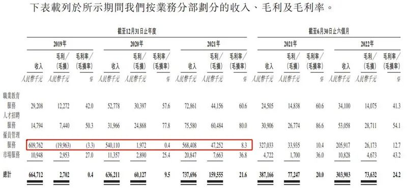 人事成本,正是为外包服务相关的人工成本。这一成本目前也并没有得到缓和,在今年上半年已经高达1.7亿元,占比仍为8成左右。居高不下的成本势必导致毛利率低,2019年至2021年及2022年上半年分别为-3.3%、0.4%、8.3%及12.7%。