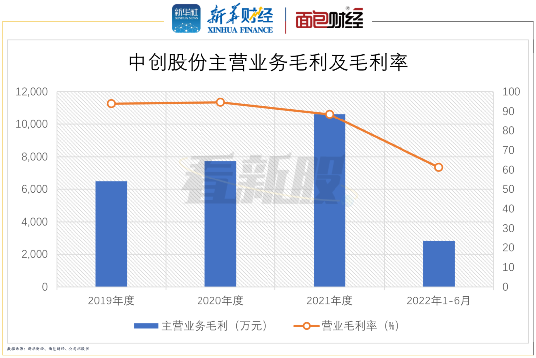 招股书显示,2019年至2022上半年,公司主营业务毛利分别为6481.91万元、7746.11万元、10637.89万元及2819.18万元,呈稳定增长趋势,但营业毛利率却由2019年的93.93%降至2022上半年的61.3%。