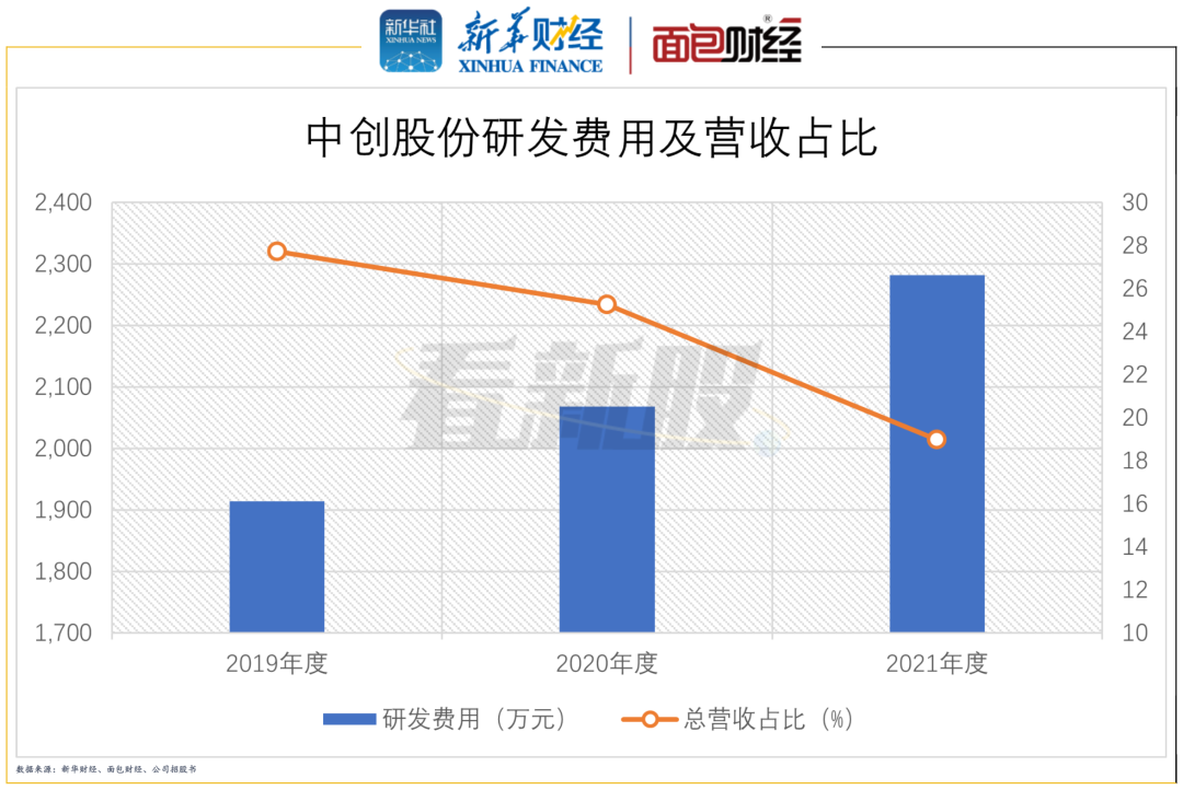 图4:中创股份研发费用及营收占比