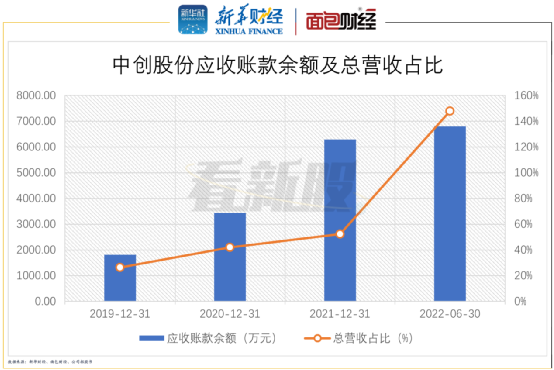 招股书显示,截至2019年末,中创股份的应收账款账余额为1814.47万元,截至2022年6月末,应收账款余额已增长至6804.09万元。其在营收中的占比由2019年的26.29%增长至2021年末的52.34%,截至2022年6月末,该公司的应收账款余额已远超当期营收。