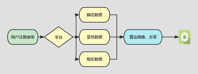 首先是用户数据生产。当用户注册使用APP,就相当于在这些网络平台上拥有了线上的虚拟身份,只要我们使用这些APP,就开始在平台上生产数据。包括三类数据: