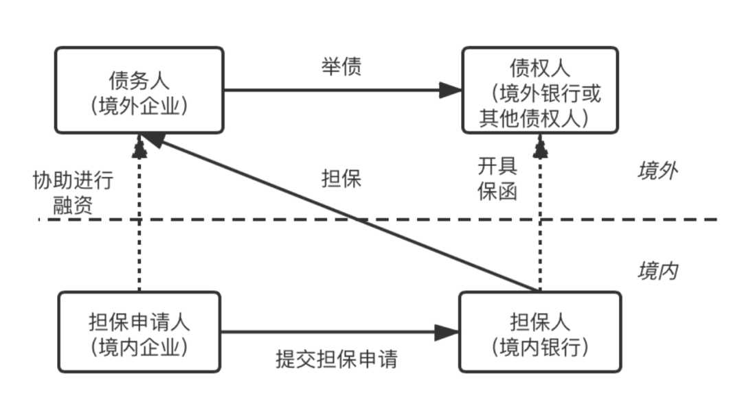“内保外贷”是指担保人注册地在境内、债务人和债权人注册地均在境外的跨境担保。根据担保人类型,可以分为企业担保和银行担保。