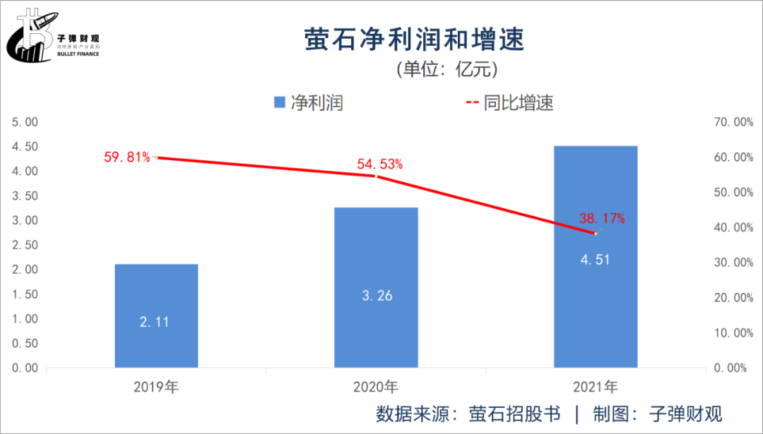 先看营收。招股书显示,2019年、2020年和2021年萤石的营收增速依次为54.69%、30.20%和37.66%,呈总体放缓态势。