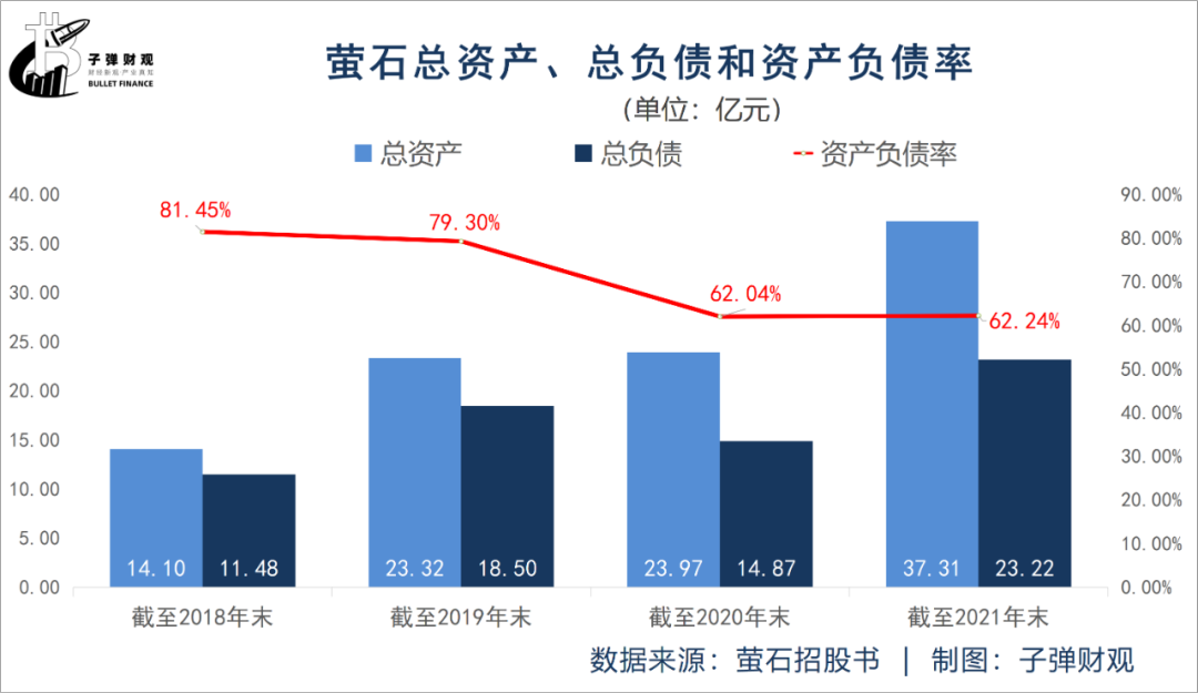 根据招股书,在过去的4个年度(2018年-2021年)里,萤石的平均资产负债率高达71.26%,超过公认的资产负债率适宜水平(40%-60%)。