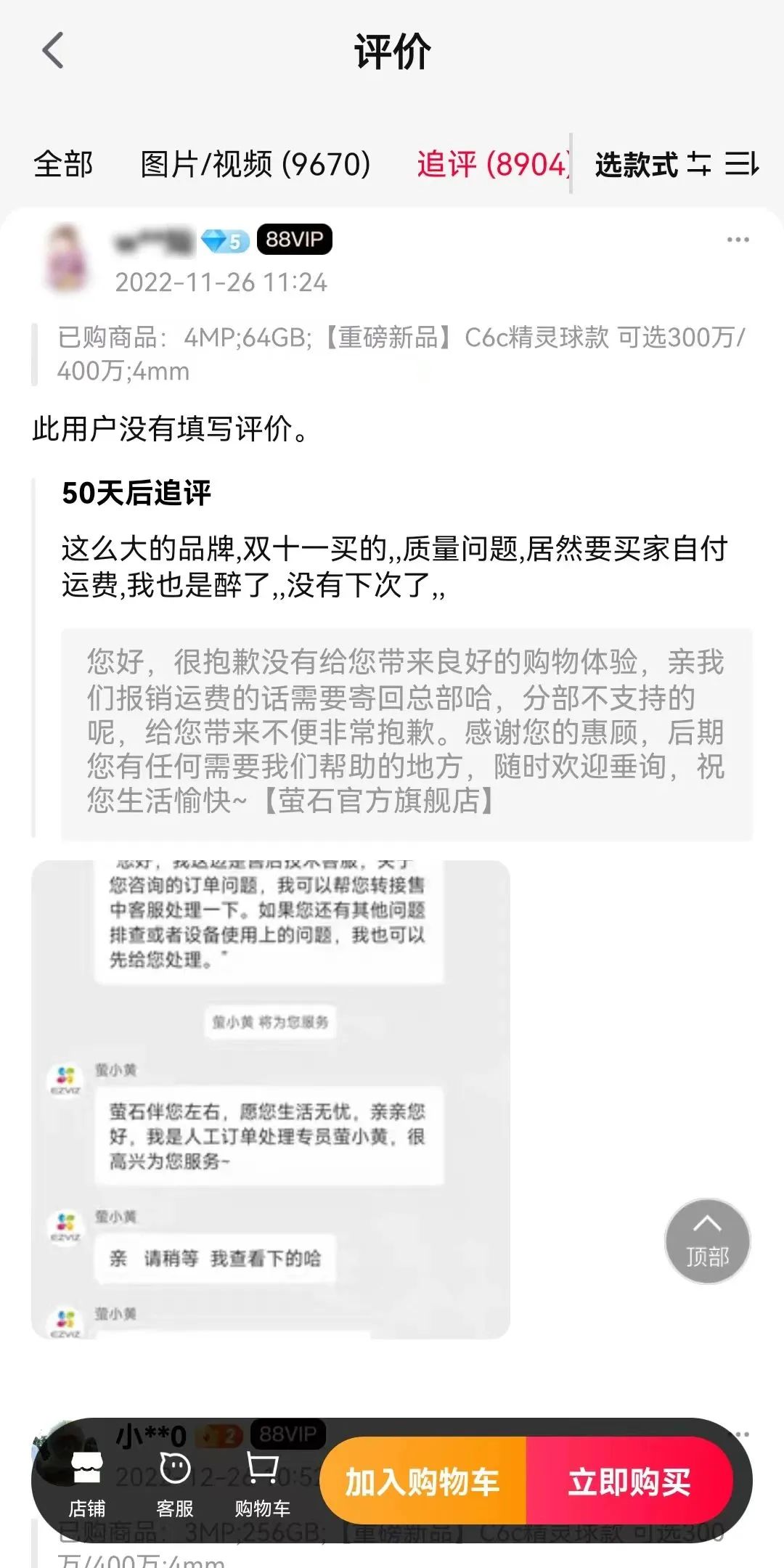 还有就是,萤石也面临口碑信誉下滑的风险。「子弹财观」注意到,无论是在抖音、小红书等社交平台,还是在天猫、京东等电商平台,抑或是在黑猫投诉等投诉平台上,都有不少关于萤石产品质量问题的投诉。