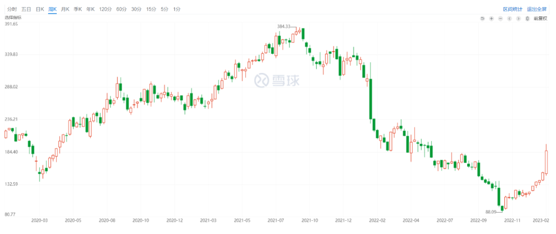 自2021年9月以来,Meta股价从384.33美元的历史高点一路走低。2022年全年,Meta股价跌幅达到64%,区间最大跌幅接近80%,在美国大型科技企业里表现最差,扎克伯格本人也由此成为过去一年里损失财富最多的美国富豪。