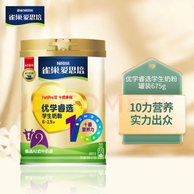 近日,雀巢爱思培推出了一款升级产品——优学睿选学生奶粉,在学生奶粉市场又落下一子。从产品介绍看,新品采用A2进口奶源,提供“亲和”的奶粉配方;同时新配方特别添加了“十重营养力”,鼓励探索式学习,培养孩子们全面发展。