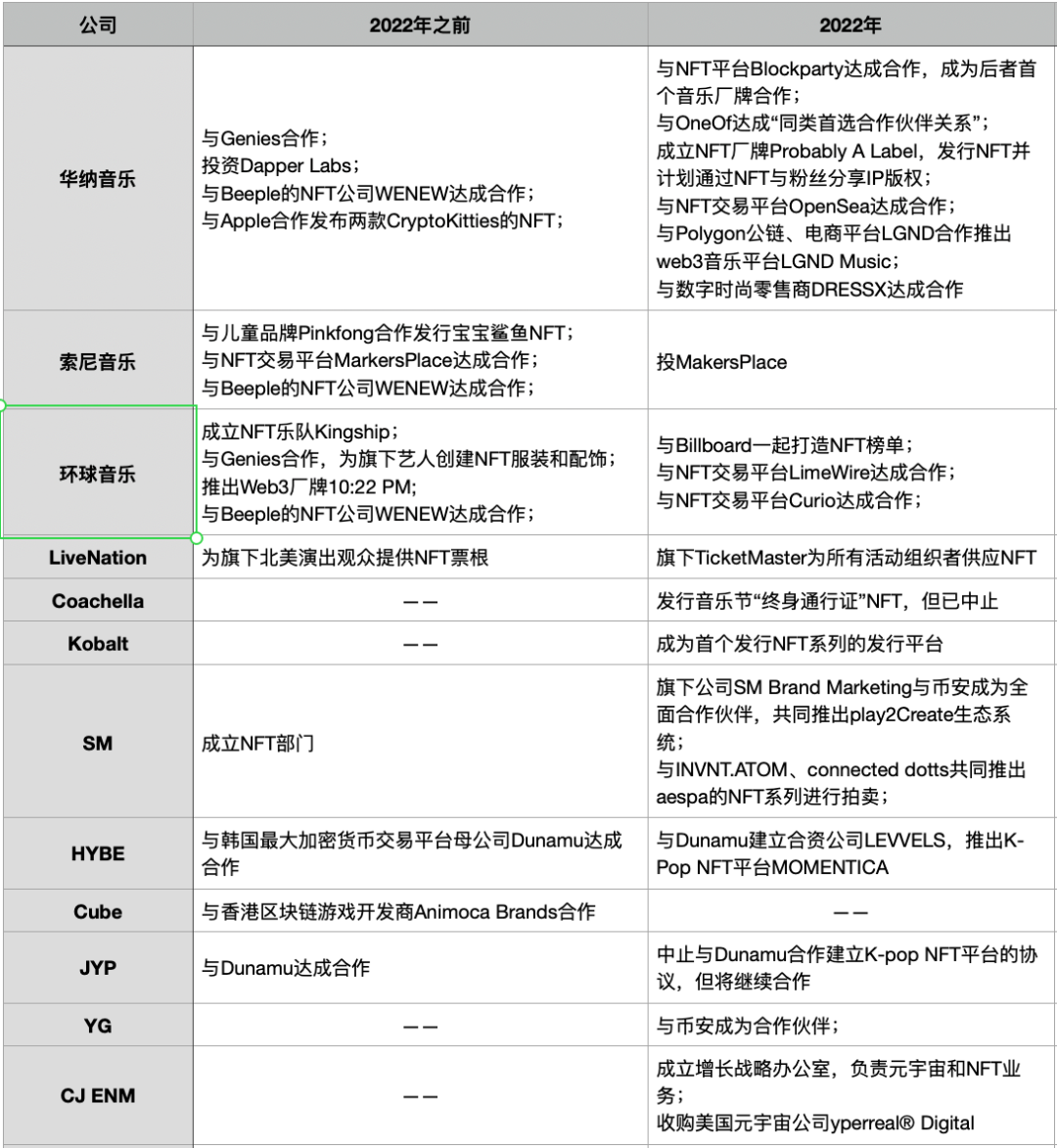与此相反的趋势是,更多的Web3初创公司得到了投资,以华纳音乐、SM娱乐为代表的音乐公司们也还在加紧布局,音乐NFT似乎并没有萎缩之势。