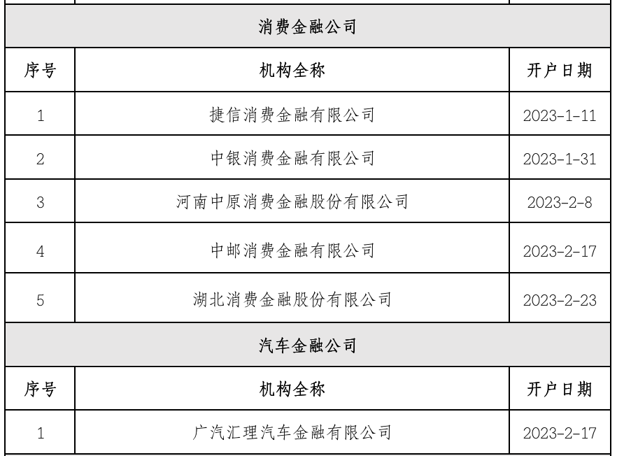 3月3日,银登中心公布的《已开立不良贷款转让业务账户机构统计表》显示,已有660家机构开立了不良贷款转让业务账户,其中包括5家消费金融公司,分别为捷信消费金融、中银消费金融、中原消费金融、中邮消费金融、湖北消费金融。