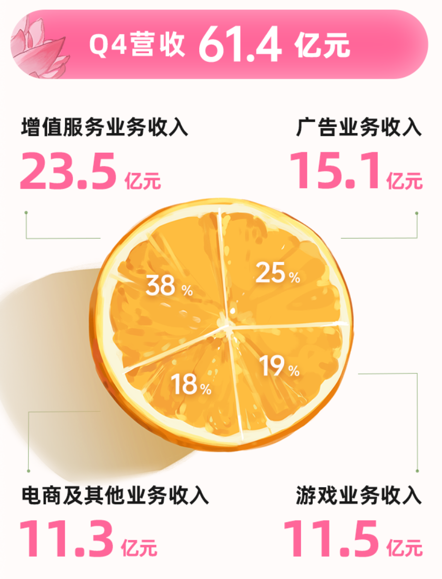 从财报数据来看,B站2022年的收入主要来自增值服务和广告,其中,包括直播、会员在内的增值服务全年收入87亿元,同比增长26%;广告收入51亿元,在2022年广告环境整体不温不火的态势下,仍实现12%的同比增长。2022年第四季度,两者的营收占比合计超60%。