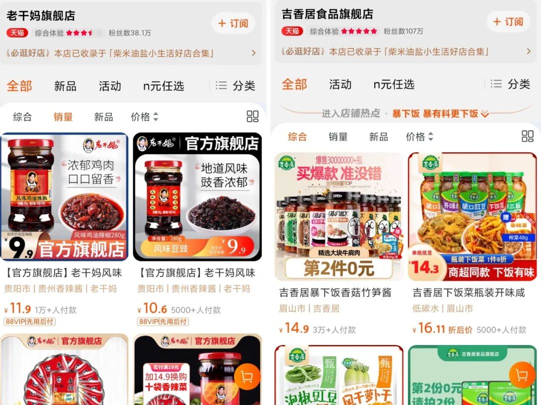 潜移默化下,向来“坚不可摧”的老干妈,在白热化的竞争中,也渐渐露出了“疲态”。数据足以说明问题,在淘宝上,老干妈官方旗舰店的粉丝数为38.1万,销量最高的产品显示月销1万+,而吉香居食品旗舰店的粉丝数为107万,销量最高的产品月销3万+。