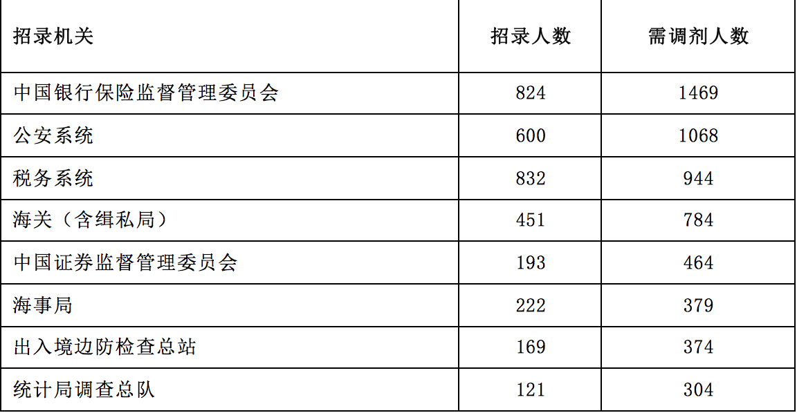 其次是公安系统,主要调剂需求来自铁路公安,其中还有14个职位来自公安部,属于中央国家行政机关(本级),面试比例为4:1。